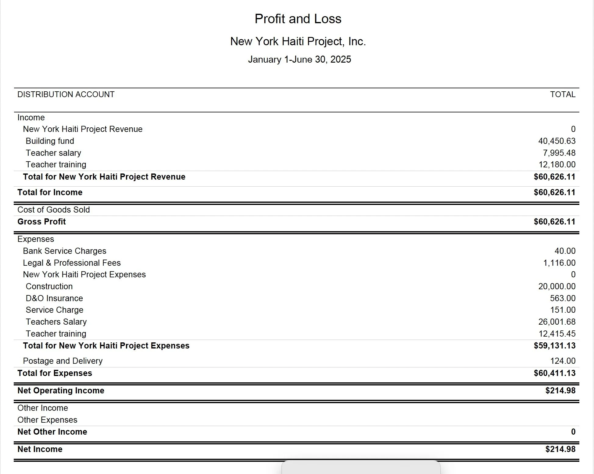 The New York Haiti Project Inc. is a New York not-for-profit corporation incorporated in 2024. We have applied to the Internal Revenue Service for recognition as a 501(c)(3) organization. When our status is recognized, it will relate back to the date of our incorporation. Assuming our 501(c)(3) status is recognized, all donations whenever received are tax deductible.
